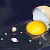 Description: An egg cracked open to reveal the solar system.